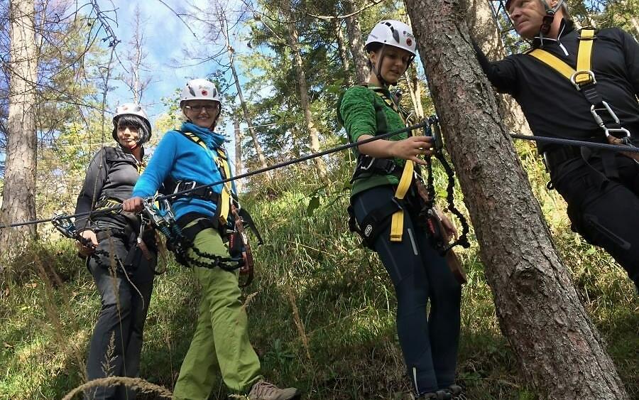 The ‘Challenge Zone’ is a new-generation outdoor run and there’s certainly nothing like it anywhere else in the Austrian Alps. Highlights of the new set-up include innovative elements such as the Sky Walk Drop, Tensegrity Climb, Challenge Swing and the F350 Flying Fox. All of these technical features and sections are accompanied, supervised and secured by our professionally-trained instructors.